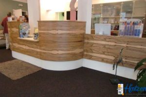 Theke u.a. Einrichtungen (für einen Hörgeräte- Akkustikladen) in Amberbaum -Satinnuß (Entstehung in unserer Werkstatt) -